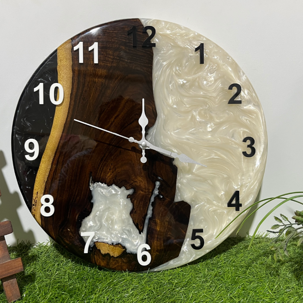 Epoxy Resin And Olive Wood Wall Clock