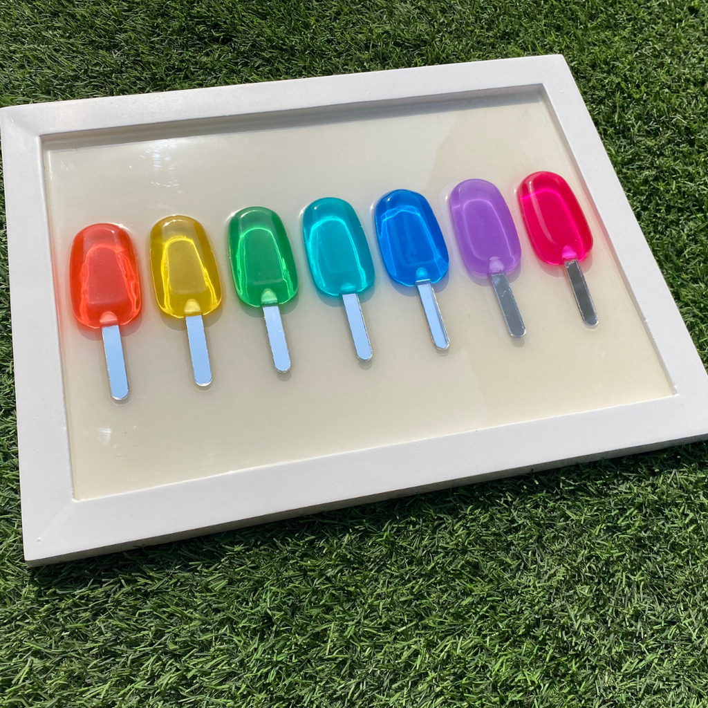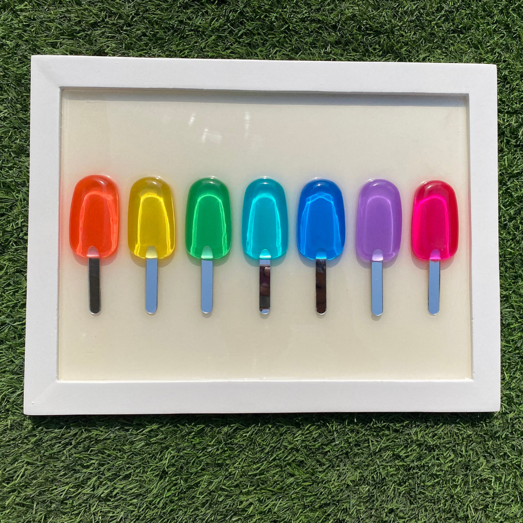 Made with epoxy , popsicles are attached on wooden frame.... see more