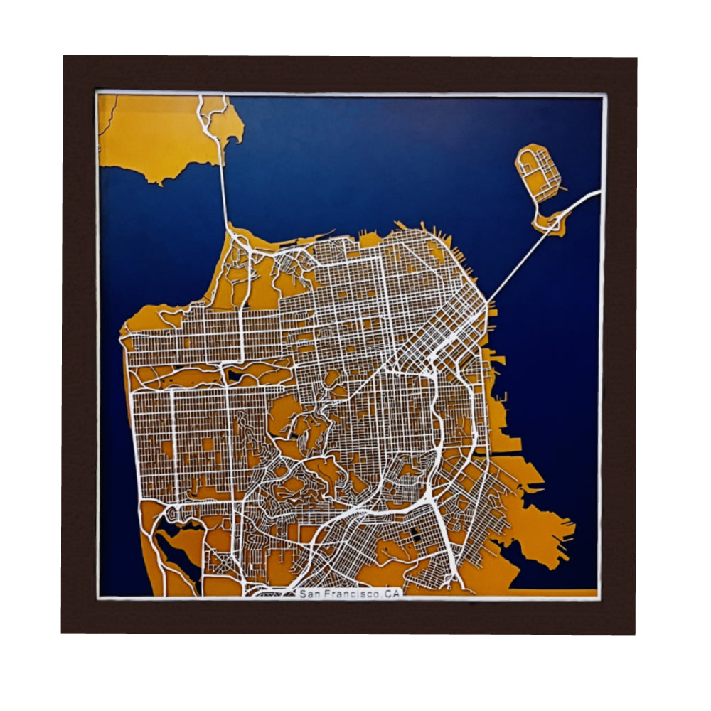 The 3D Wooden Map of San Francisco is a stunning homage to the iconic city by the bay. Crafted with meticulous detail, this map showcases the intricate geography of San Francisco in a three-dimensional format. Each neighborhood, landmark, and waterway is carefully carved ... see more