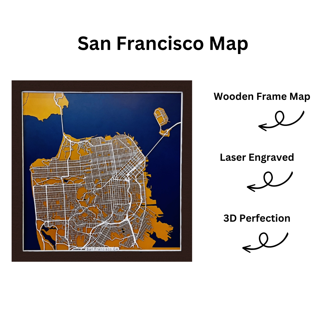 The 3D Wooden Map of San Francisco is a stunning homage to the iconic city by the bay. Crafted with meticulous detail, thi... see more
