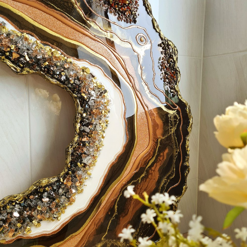 Elevate your home decor with the captivating allure of our Resin Geode Wall Art. Inspired by the natural beauty of geodes, each piece is meticulously handcrafted to mimic the intricate patterns and vibrant colors found in nature.