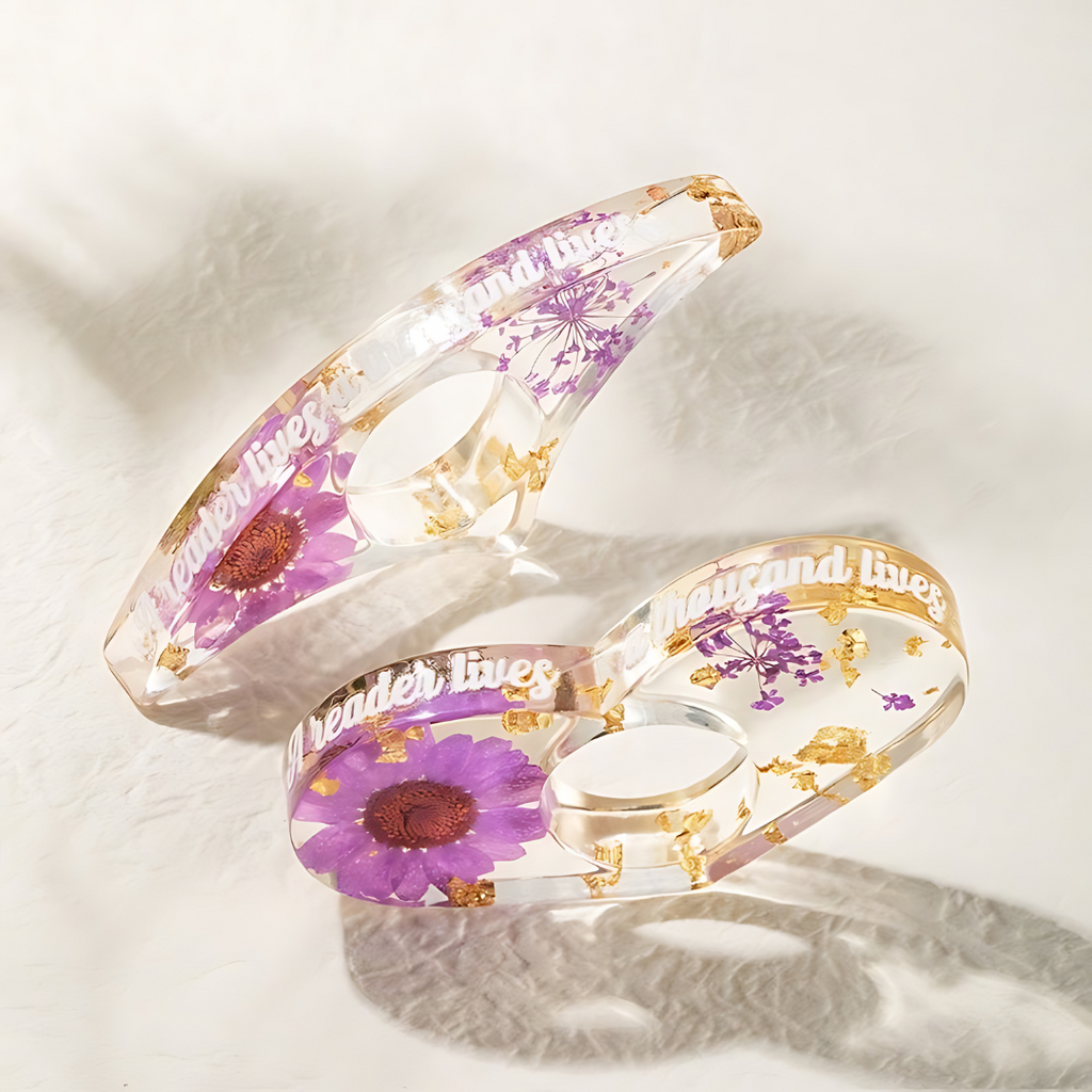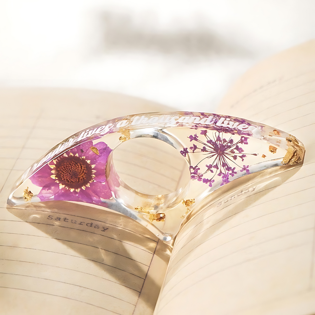 With this Custom Floral Epoxy Resin Thumb Page Holder, you may fully appreciate the splendor of the natural world. Each holder is painstakingly made from real, delicate flowers that are covered in crystal-clear resin, transforming it from a useful tool for holding your book open to a tiny piec... see more